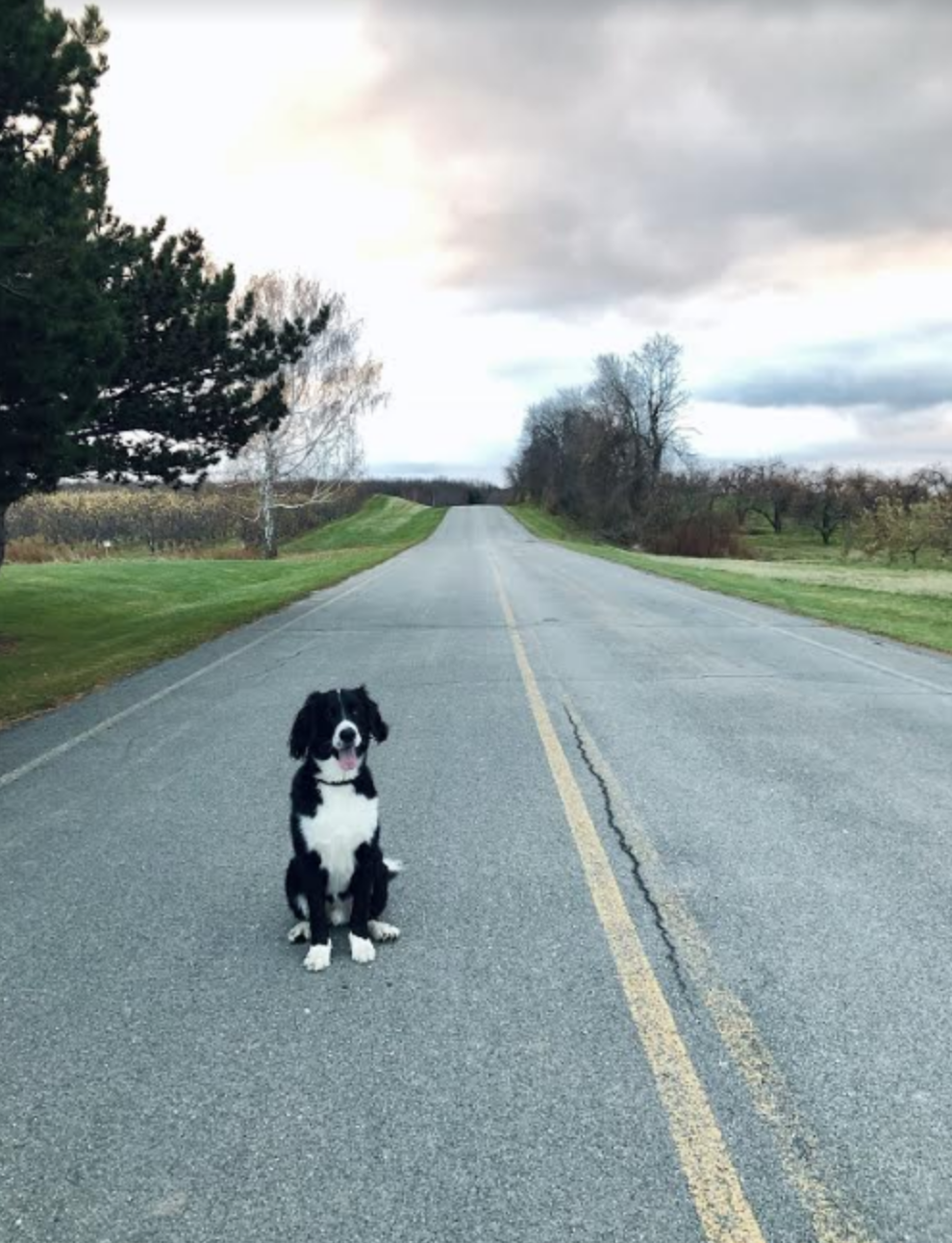 Russell, the family dog, is enjoying small-town life, too. Photo courtesy of Hélène Biandudi Hofer.